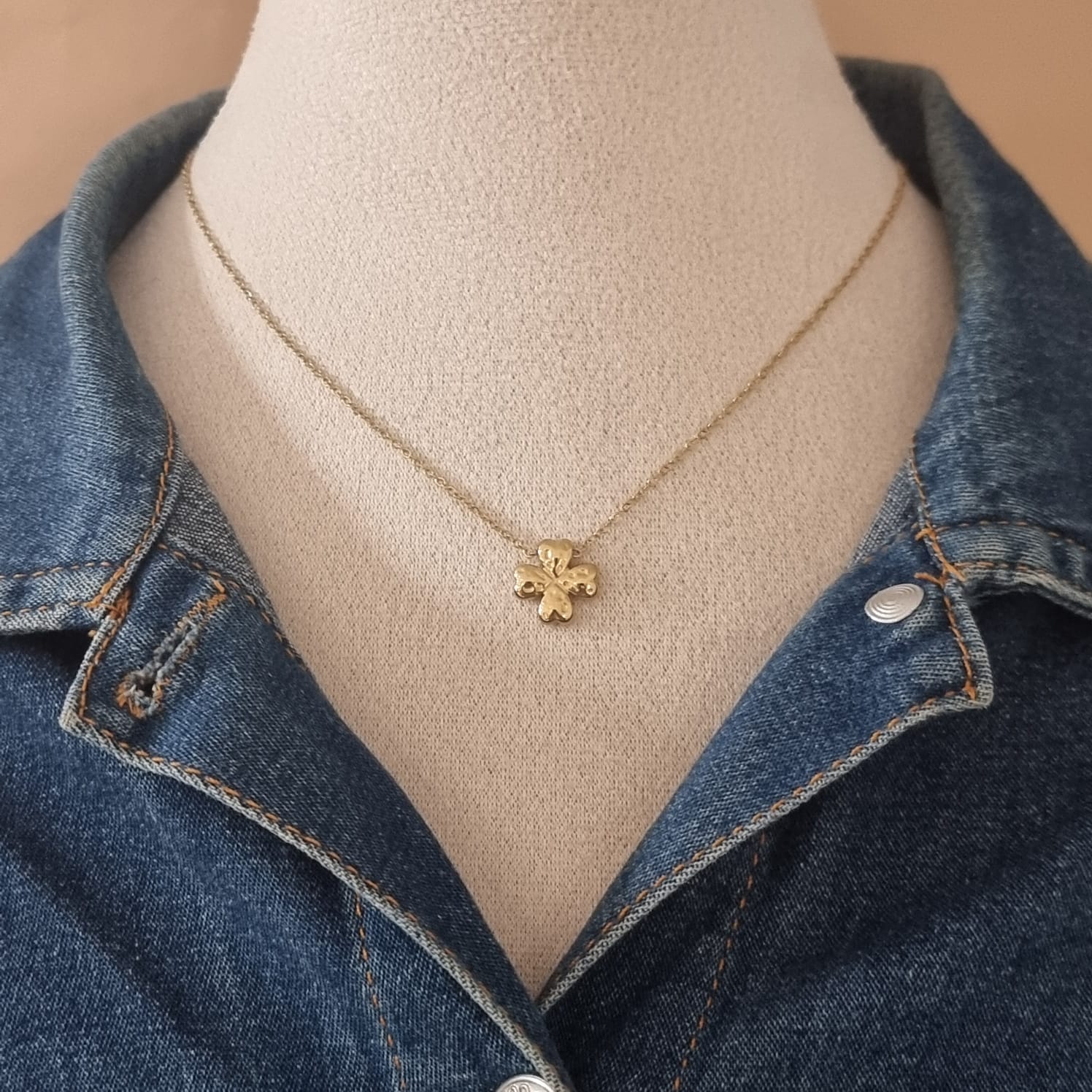 Ce collier ras de cou doré est orné d’un délicat trèfle à 4 feuilles, symbole universel de chance et de protection. Il est en acier inoxydable, un matériau durable qui résiste à l’eau et ne noircit pas, idéal pour une utilisation quotidienne sans entretien.